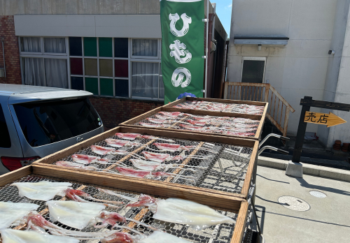 干物本来の美味しさを出すうえで重要な工程のひとつが、天日干しだと我々は考えます。 その日の天気や気温で天日干しと日陰干しを調整し、しっかりと魚の水分を抜くことで 旨味が凝縮し美味しい干物が出来上がります。